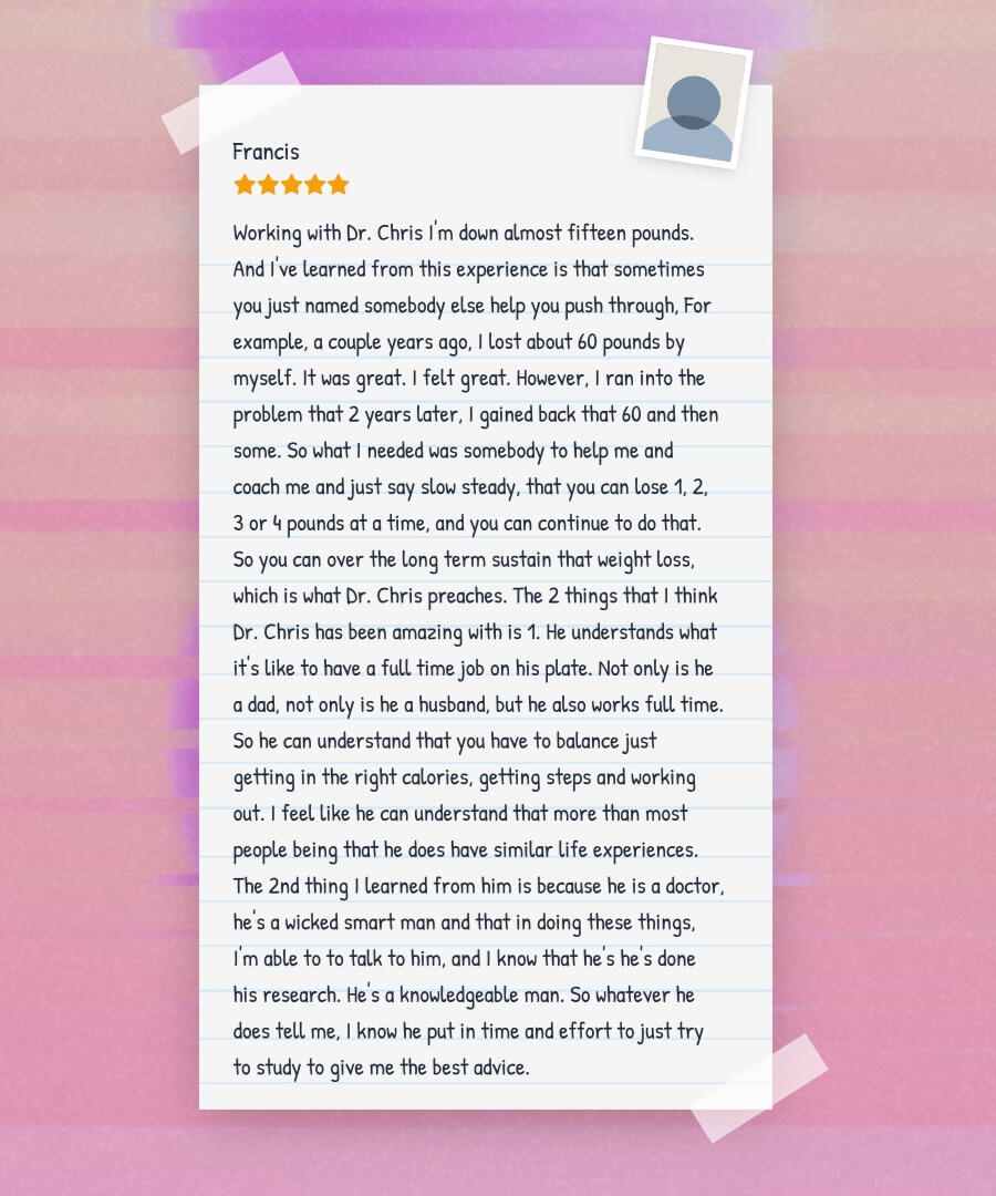 My experience is rooted in years of immersion in the health and fitness industry and direct patient interactions for 15+ years.