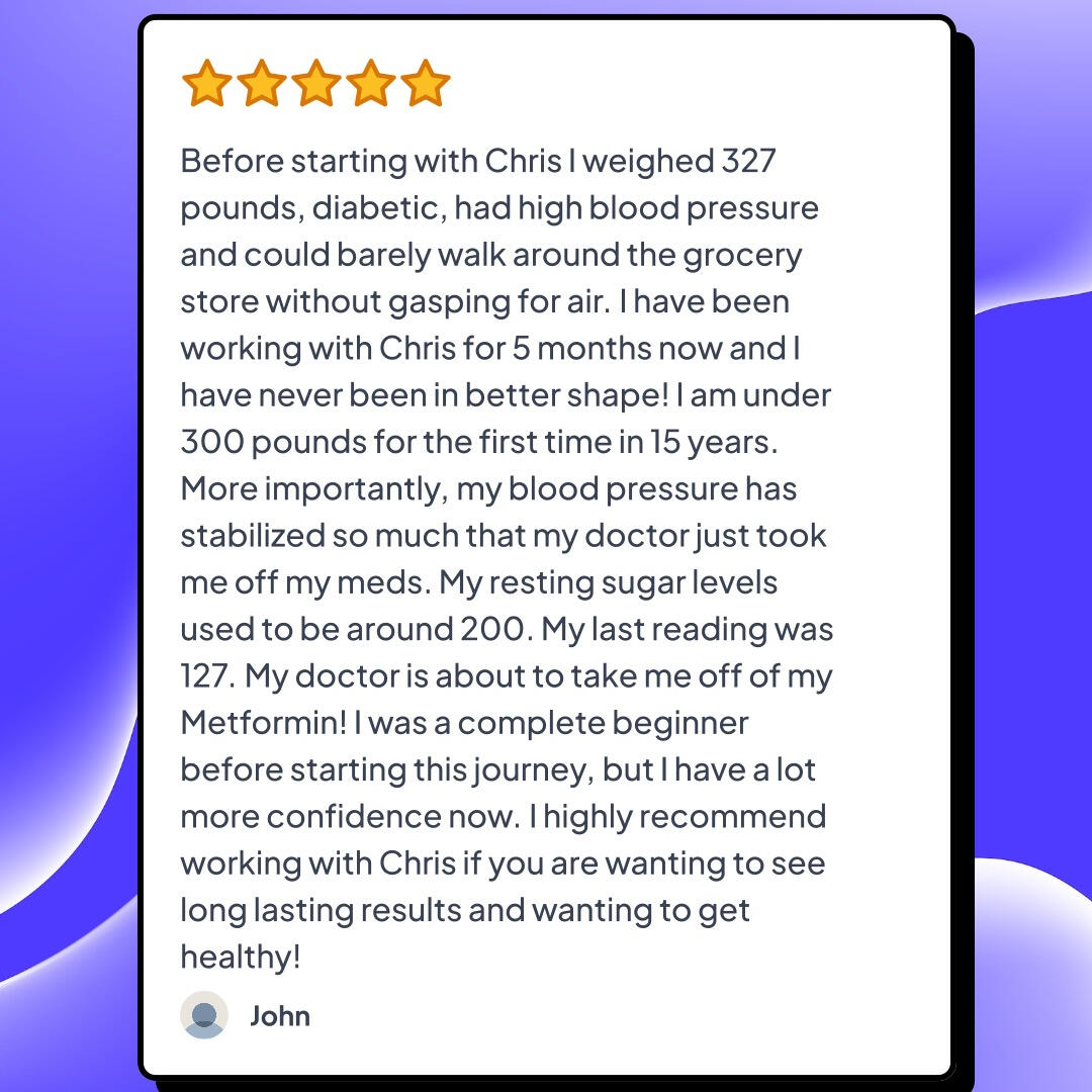 I ensure that I only work with a few clients at a time. This way I can all but guarantee you hit your health and fitness goals.